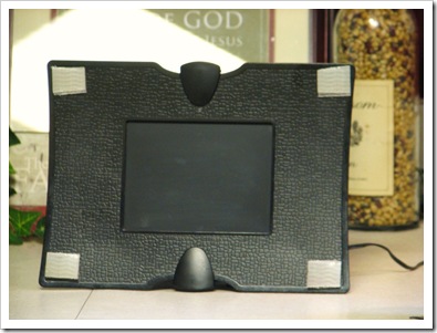 How can I attach the mat to the digital frame? My first thought after duct tape was hot glue gun, but I wasn’t thrilled with either of those options. How about sticky Velcro? Yep, that worked: